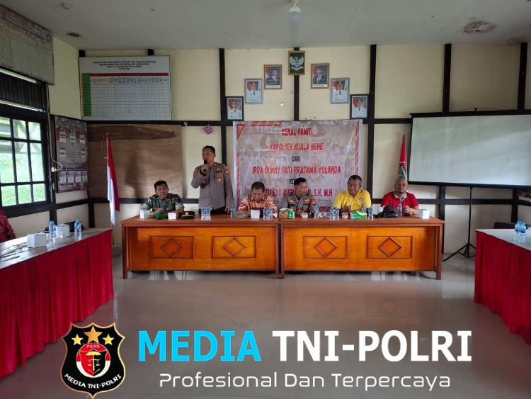 LANDAK // MEDIATNI-POLRI.COM / Polsek Kuala Behe ~ Polres Landak ~ Polda Kalbar ~ Kepolisian Sektor Kuala Behe Polres Landak mengadakan acara kenal pamit untuk jabatan Kapolsek dari Pejabat Lama kepada Pejabat yang Baru, yang digelar di Aula Serba guna Kantor Camat Kuala Behe, Jumat (12/09/2025).