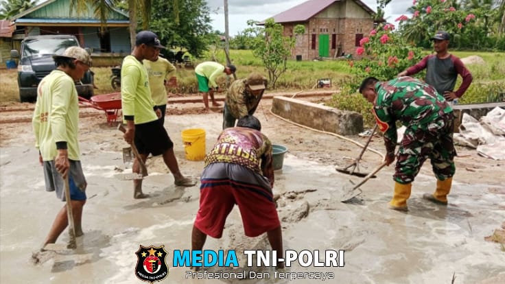 “Pada saat melaksanakan monitoring di wilayah teritorialnya Babinsa Koptu Teguh melihat keluarga Bapak Rohim dibantu tetangganya melaksanakan pengecoran halaman rumah miliknya, dan seketika itu Babinsa Koptu Teguh menunjukkan aksinya membantu melaksanakan pengecoran semen secara bersama-sama”. ungkap Mayor Inf La Haruni.