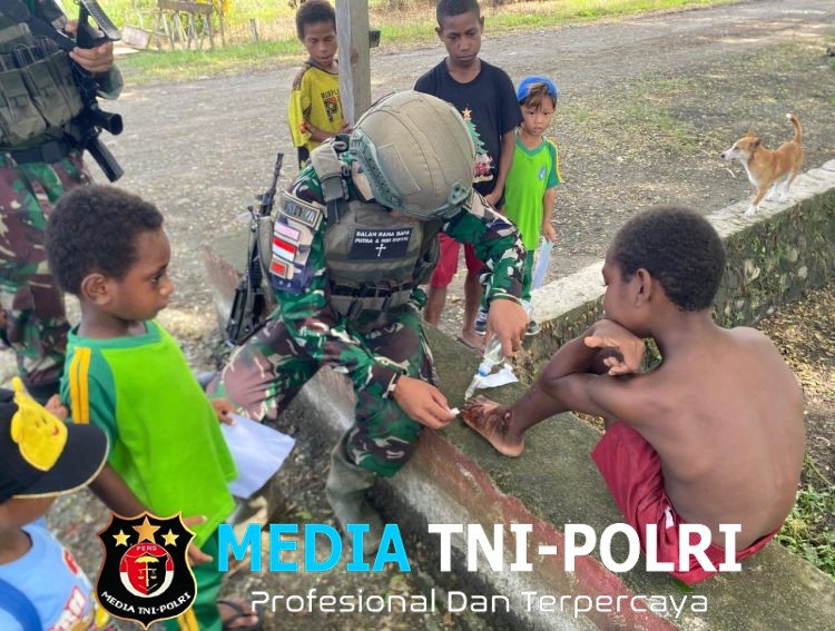 lantas pada saat personil Satgas akan kembali ke Pos diperjalanan dihampiri anak-anak yang sedang bermain selepas sekolah dan terlihat 1 (satu) anak di bagian tangan serta punggung kaki terdapat luka.
