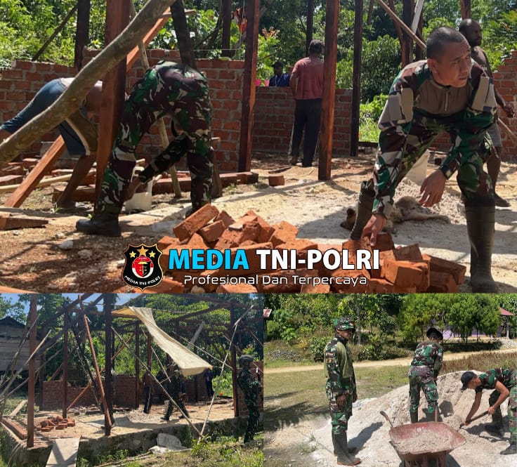 MAYBRAT // MEDIATNI-POLRI.COM / Satgas Pamtas RI-PNG Kewilayahan Papua Barat Daya Yonif 762/VYS Pos Subin gotong royong membantu proses pembangunan rumah Bapak Karel Wato, warga Kampung Subin, Distrik Aitinyo, Kabupaten Maybrat, Papua Barat Daya, Sabtu (01/02/2025).