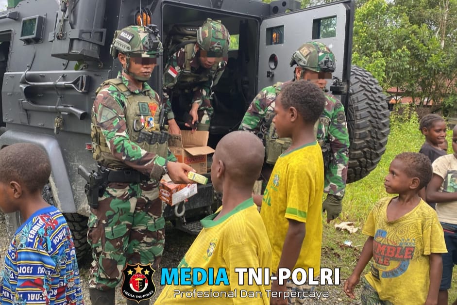 Pada Minggu, (29/12/2024), Satgas Yonif 6 Marinir, khususnya Pos Bravo pimpinan Letda Mar Alter, melaksanakan Komunikasi Sosial (Komsos) dengan anak-anak Kampung Tomonsatu, Distrik Dekai, sambil melaksanakan patroli pengamanan wilayah.