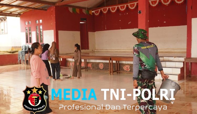 KOTAWARINGIN TIMUR // MEDIATNI-POLRI.COM / Dalam rangka mendukung kebersihan lingkungan dan penyiapan tempat diselenggarakan kegiatan Sunat Massal, Satgas TMMD Reguler ke-127 Kodim 1015/Sampit bersama warga melaksanakan kegiatan pembersihan Aula Kantor Desa Tri Buana, Kecamatan Antang Kalang, Kabupaten Kotawaringin Timur, Kamis (12/02/2026).