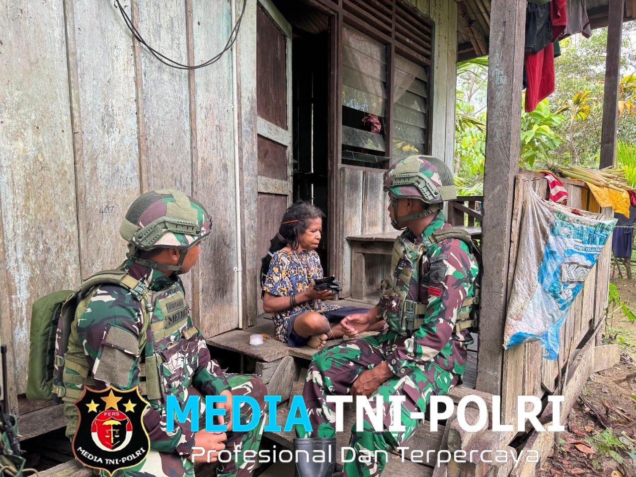 Dalam kunjungannya, personel Satgas menyambangi beberapa warga setempat guna mendengarkan aspirasi serta memberikan bantuan berupa bahan kebutuhan pokok.
