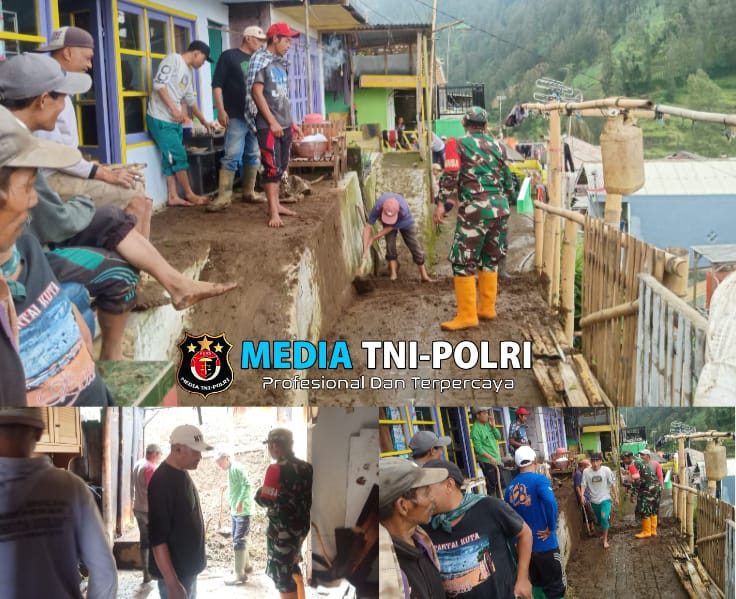 PASURUAN // MEDIATNI-POLRI.COM / Serka Yulianto Babinsa Koramil 0819/26 Tosari, bersama dengan warga sekitar dan perangkat Desa, melaksanakan kegiatan pembersihan di rumah warga yang terkena dampak bencana alam tanah longsor beralamat di Dusun Ledoksari, RT 1 RW 7 Desa Tosari, Kecamatan Tosari, Kabupaten Pasuruan. Selasa, (18/02/2025)