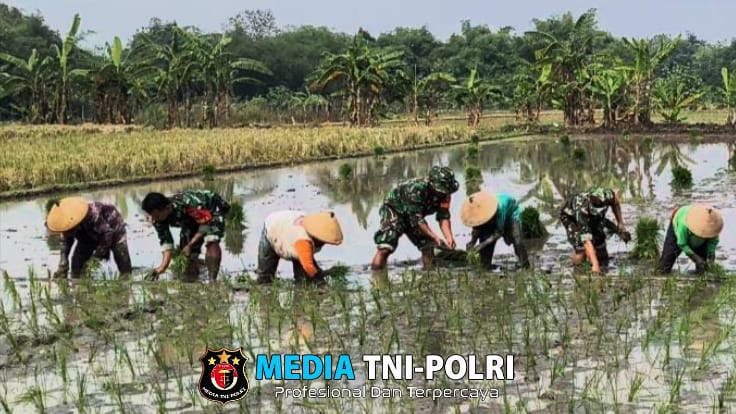 Babinsa dan petani bahu-membahu mengerjakan berbagai tahapan penanaman, mulai dari persiapan lahan, penyemaian benih, hingga penanaman padi di sawah.