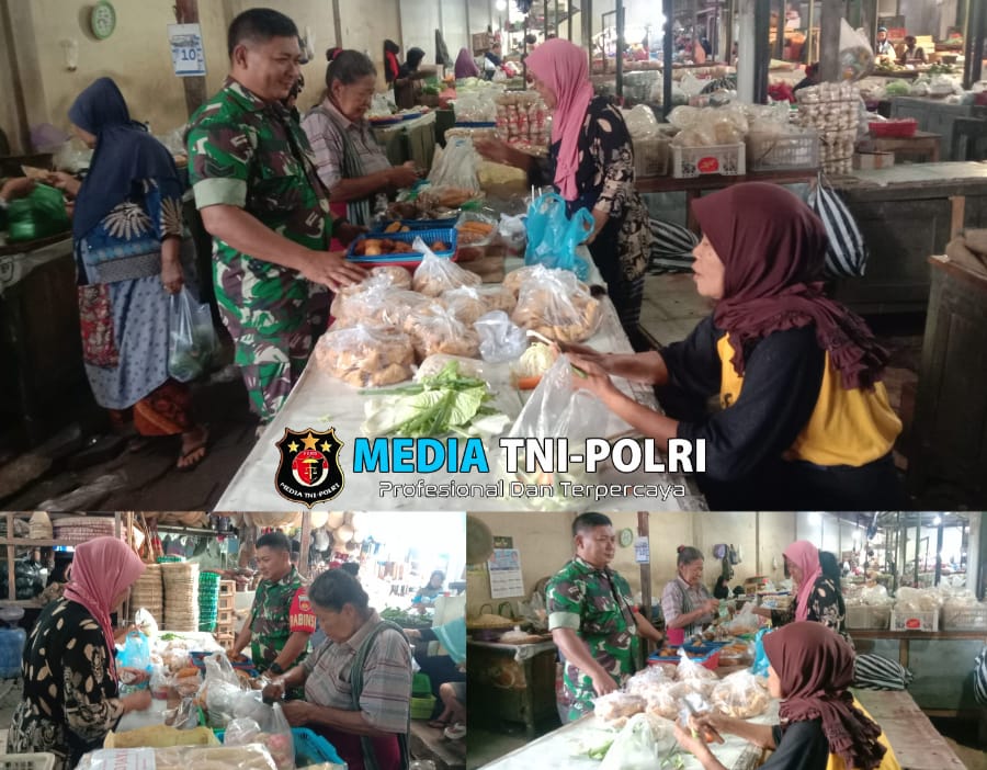 Sertu Rochani datang melakukan pemantauan di lokasi Pasar Harjodaksino Ibu Rokhayah Pedagang Sayur, Danukusuman Serengan Kota Surakarta.