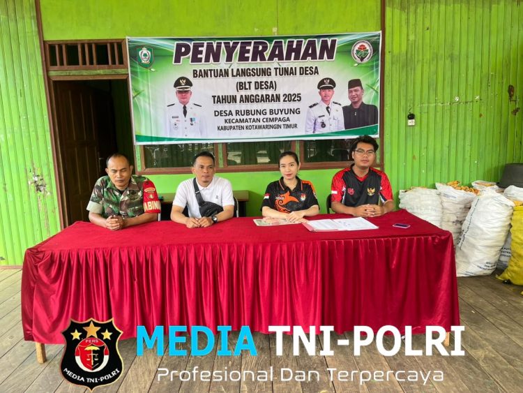 KOTAWARINGIN TIMUR // MEDIATNI-POLRI.COM / Babinsa Koramil 1015/06 Cempaga Serka Kristiano Dampingi Penyerahan Bantuan Langsung Tunai Desa (BLT-DD) anggaran bulan Desember 2025 dilaksanakan di aula Desa Rumbung buyung, Kecamatan Cempaga, Kabupaten Kotawaringin Timur, pada hari Jum’at, 12 Desember 2025.
