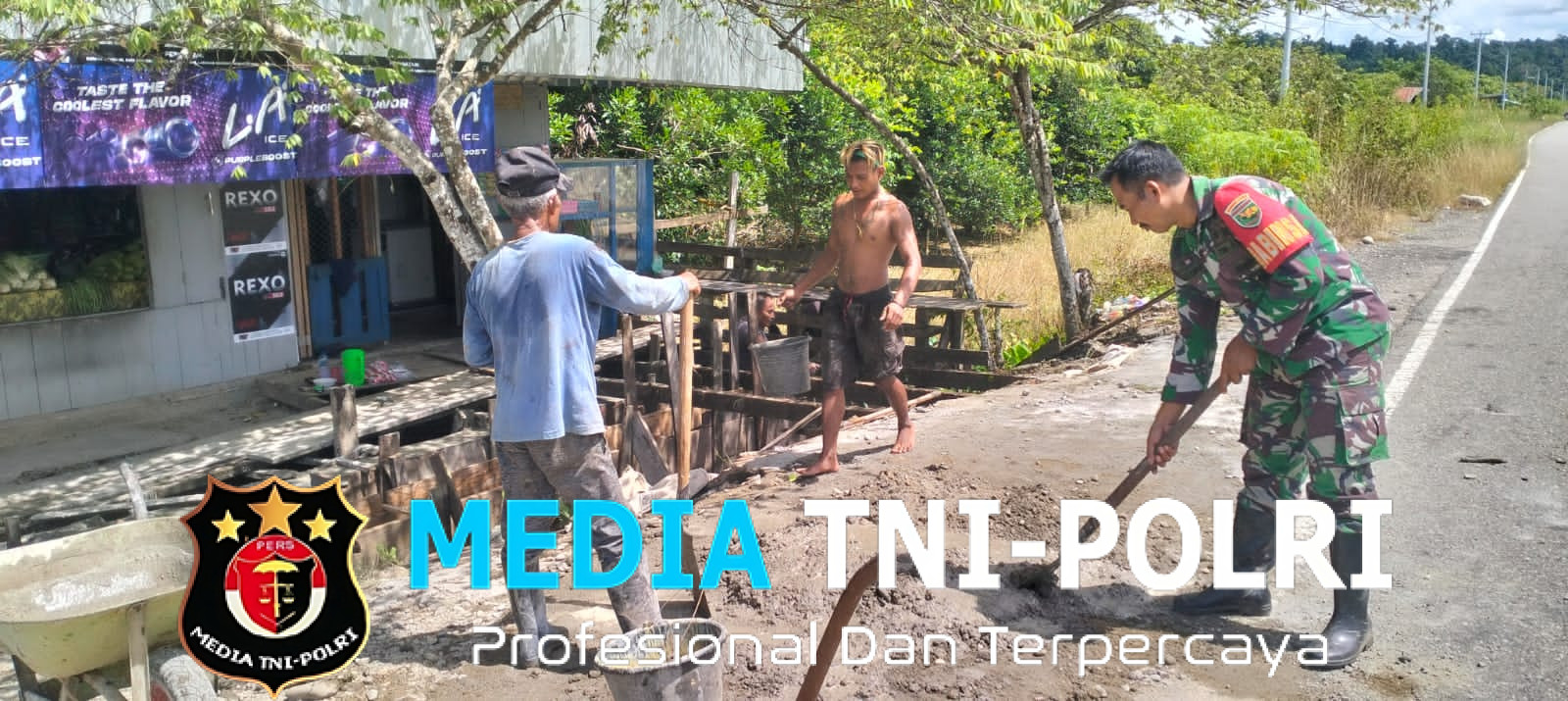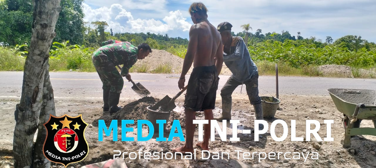 PAPUA TENGAH // MEDIATNI-POLRI.COM / Babinsa Kampung Wami Jaya, Serka Miswar melaksanakan gotong royong pengecoran jembatan depan rumah bapak Aryo di Kampung Wami jaya Distrik Yaur Kab Nabire Provinsi Papua Tengah.