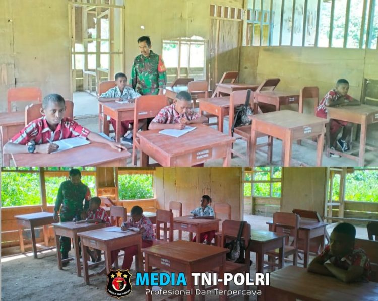 NABIRE // MEDIATNIPOLRI.COM / Kamis 20 maret 2025.Srk Miswar membantu memberikan pelajaran tentang Wawasan kebangsaan terhadap siswa SD YPK Akudiomi.