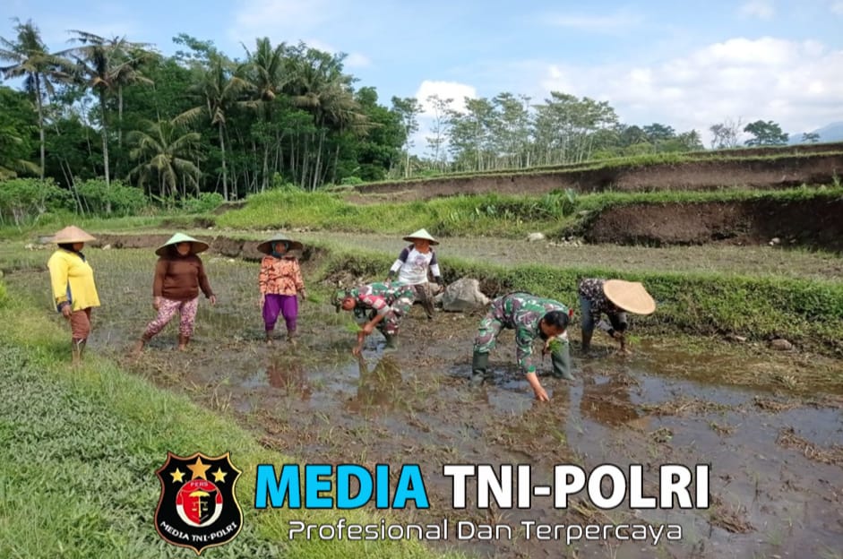 BLITAR // MEDIATNI-POLRI.COM / Serma Gunawan Harianto, Babinsa Koramil 0808/15 Gandusari, kembali menunjukkan dedikasinya kepada masyarakat dengan terjun langsung membantu kelompok tani (Poktan) Barokah dalam menanam bibit padi jenis Inpari. Kegiatan ini berlangsung di area persawahan Dusun Kotes, Desa Kotes, Kecamatan Gandusari, Kabupaten Blitar.