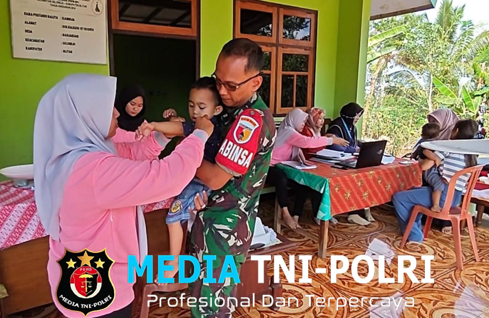 Serda Dharlis dari Koramil 0808/21 Selorejo Kodim 0808/Blitar, bersama bidan desa dan para kader Posyandu Melati di RT 02 RW 01 Desa Pohgajih Kecamatan Selorejo Kab. Blitar, Kamis (22/5/2025).