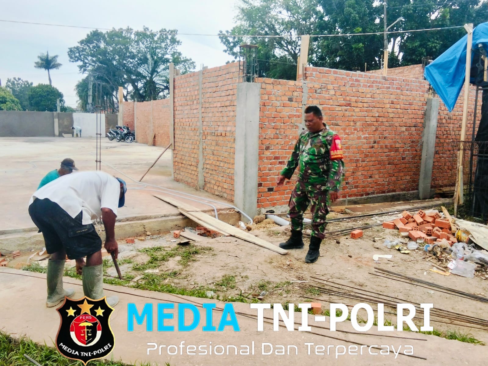 Babinsa juga memberikan motivasi kepada para pekerja agar tetap mengutamakan keselamatan kerja dan menjaga kualitas bangunan.