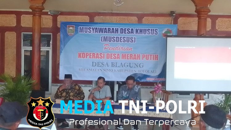 Babinsa Koramil 12/Simo Kodim 0724/Boyolali Sertu Budi Utomo bersama Babinkamtibmas Aiptu Suwardi menghadiri kegiatan Musyawarah Desa Khusus (Musdesus) pembentukan Koperasi Merah Putih yang digelar di Balai Desa Blagung Kecamatan Simo Kabupaten Boyolali. Jumat ( 23/05/2025)