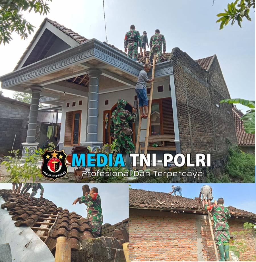 Bersama dengan warga setempat Sertu M Zaenuri melakukan perbaikan atap dengan mengganti bahan yang rusak dan memperkuat struktur atap yang terdampak.