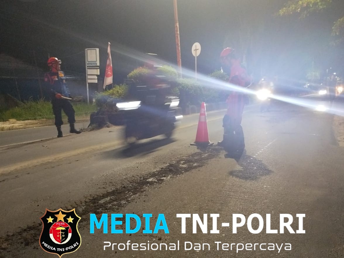 Setelah sampai di lokasi petugas pun langsung melakukan penanganan pada tumpahan minyak di jalan sepanjang sekitar 50 meter tersebut.