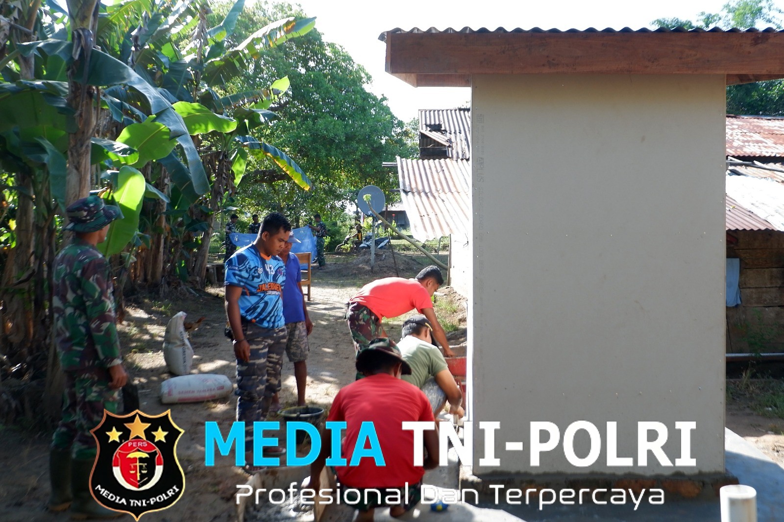 Di belakang rumahnya, berdiri bangunan MCK yang sudah mulai terlihat bentuknya, buah dari kerja keras personel Satgas TMMD Ke-125 Kodim 1707/Merauke yang turun langsung membangun dengan semangat pengabdian.