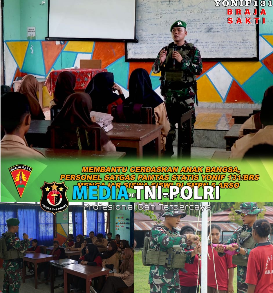 Satgas Pamtas RI-PNG Yonif 131/BRS juga melaksanakan tugas-tugas tambahan yaitu membantu Pemerintah Daerah dibidang Pendidikan yg salah satunya dilaksanakan dengan menjadi guru bantu dengan mengajarkan wawasan kebangsaan dan nasionalisme serta latihan baris berbaris untuk membina mental dan kedisiplinan siswa-siswi sekolah. Jumat (4/10/2024).