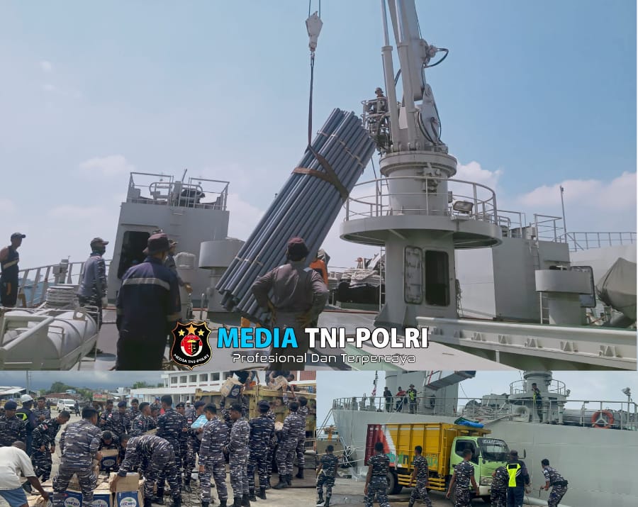 JAKARTA // MEDIATNI-POLRI.COM / Unsur Kapal Perang Republik Indonesia (KRI) Teluk Youtefa-522 yang tergabung dalam misi kemanusiaan dalam rangka mendukung distribusi material pembangunan hunian sementara untuk korban terdampak bencana erupsi Gunung Lewotobi Laki-Laki,