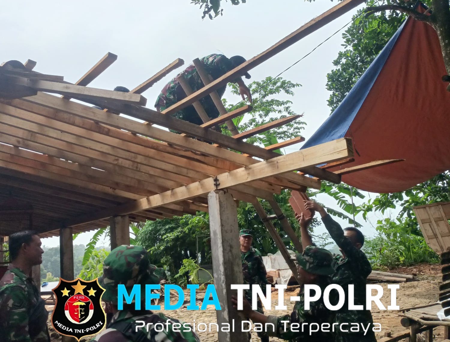 “Ini sebentar lagi ibu akan memiliki rumah yang layak sudah tidak bocor lagi kalau hujan,” pesan Lettu Agung kepada ibu Sarikem warga Dusun Golo, Desa Kembang.