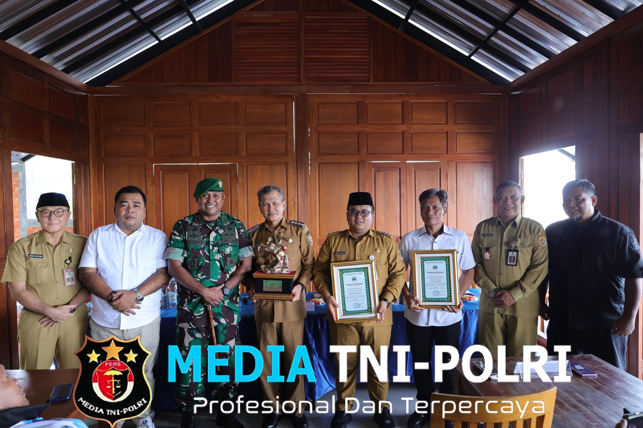 Dandim 0728/Wonogiri Letkol Inf Rodricho Ivan Pattihahuan menyerahkan langsung piala penghargaan kepada masyarakat Wonogiri dan di terima langsung oleh Bupati Wonogiri Setyo Sukarno, Selasa (23/12/2025).