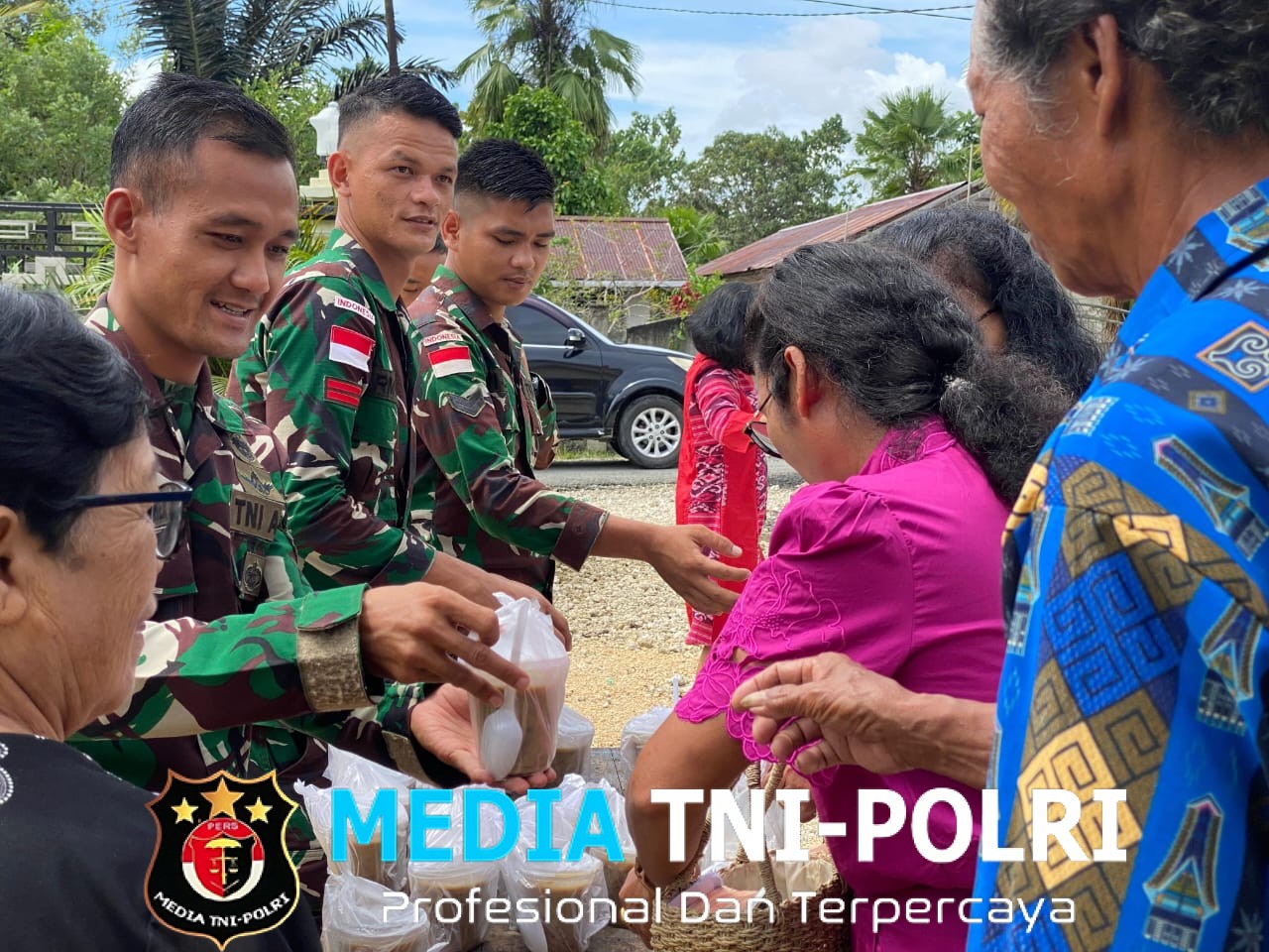 Kegiatan yang dilakukan oleh Pos Kotis Satgas Yonif 131/Brajasakti ini menjadi momen berbagi kasih di hari Minggu yang penuh berkah.