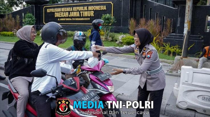 Imbauan ini disampaikan langsung oleh personel Ditlantas Polda Jatim sambil berbagi takjil di depan Mapolda Jatim saat menjelang berbuka puasa Ramadhan,Rabu (12/3/2025).