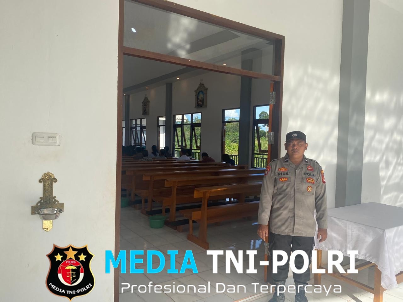 LANDAK // MEDIATNI-POLRI.COM / Untuk menciptakan situasi yang Kondusif, agar jemaat merasa aman dan nyaman saat melaksanakan ibadah, Personil Polsek Meranti Aipda Oktapianus Pius dan Briptu Sebastianus Rio Kinboh Melaksanakan pengamanan di Gereja Katholik Hati Kudus Yesus di Dusun Meranti desa Meranti kecamatan Meranti kabupaten Landak dan di Gereja Bethel Indonesia di dusun Jelayan desa Meranti kecamatan Meranti kabupaten Landak. Kegiatan pengamanan Ibadah di laksanakan pada hari minggu pagi, Minggu, 31/08/2025.
