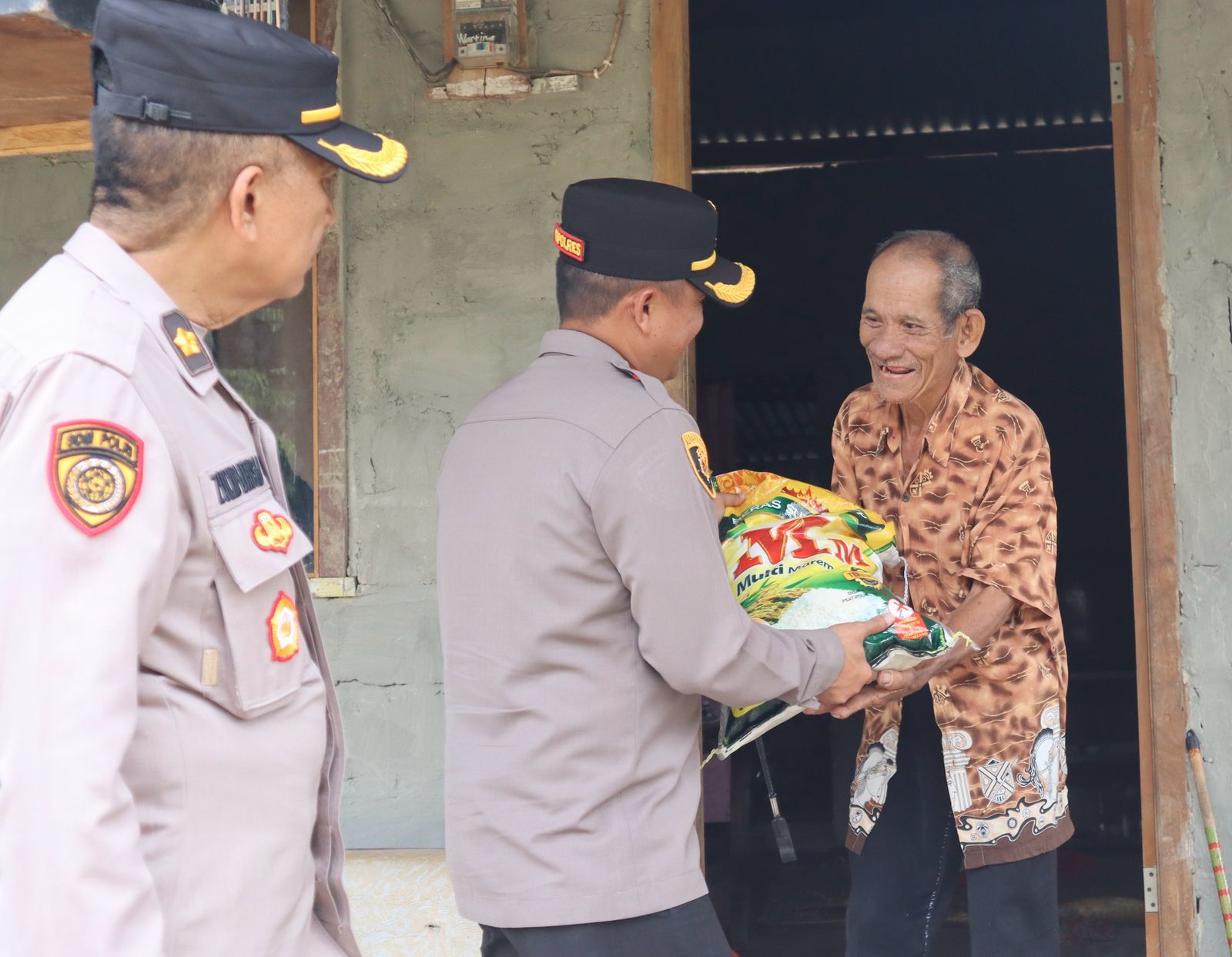 Kapolres beserta jajarannya turun langsung membagikan puluhan karung beras kepada warga yang kurang mampu.