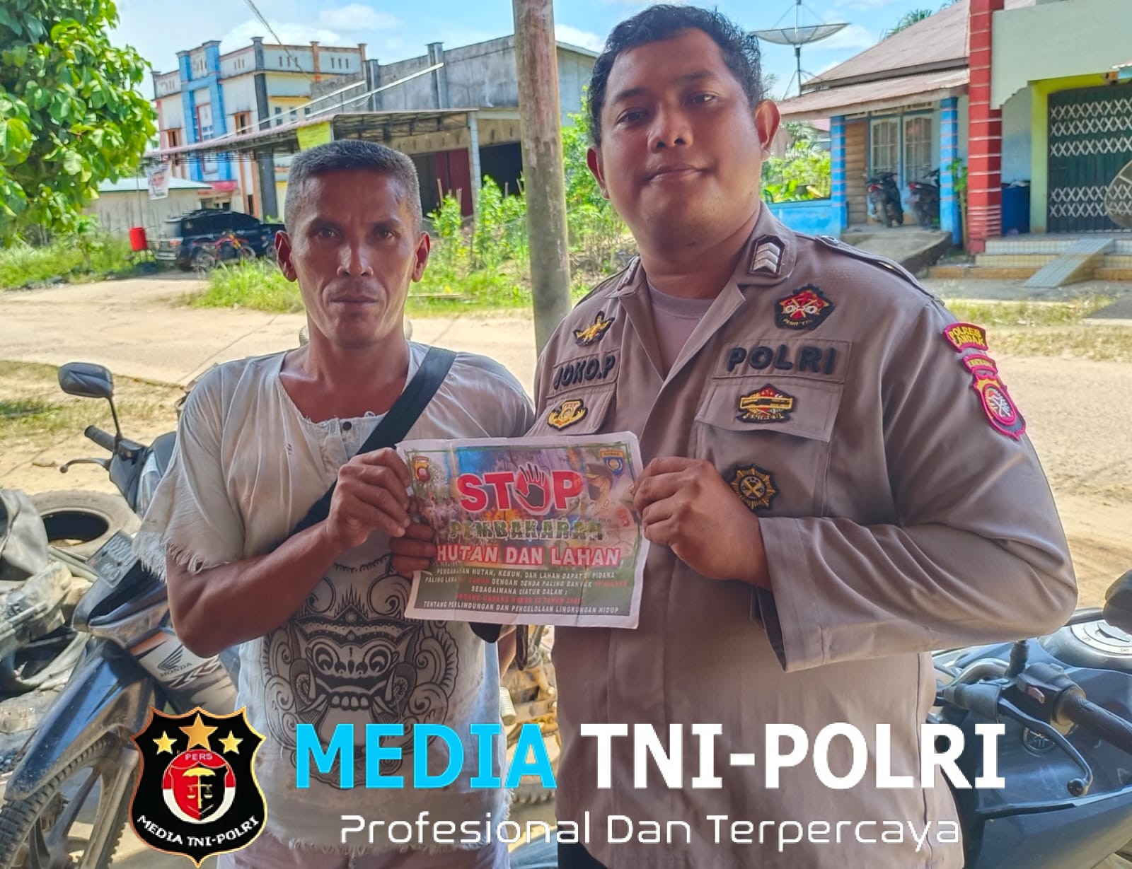 LANDAK // MEDIATNI-POLRI.COM / Polsek Kuala Behe – Polres Landak, Bhabinkamtibmas Polsek Kuala Behe Polres Landak Brigpol Joko Puji S. Melakukan kegiatan sosialisasi pencegahan kebakaran hutan dan lahan (Karhutla),