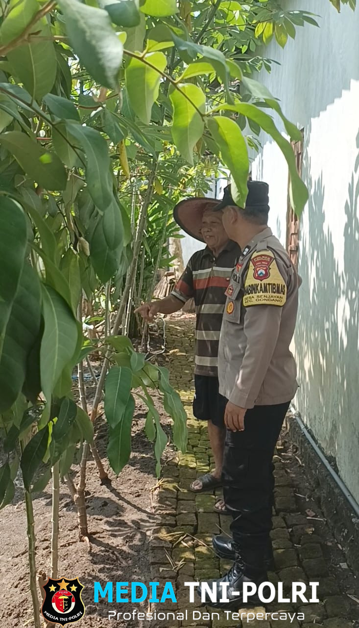 NGANJUK // MEDIATNI-POLRI.COM / Bhabinkamtibmas Desa Senjayan, Aiptu Suyanto, melaksanakan pemantauan lahan pekarangan bergizi milik warga sebagai bagian dari program ketahanan pangan di RT 001 RW 006 Desa Senjayan, Kecamatan Gondang, pada Selasa (13/5/2025).