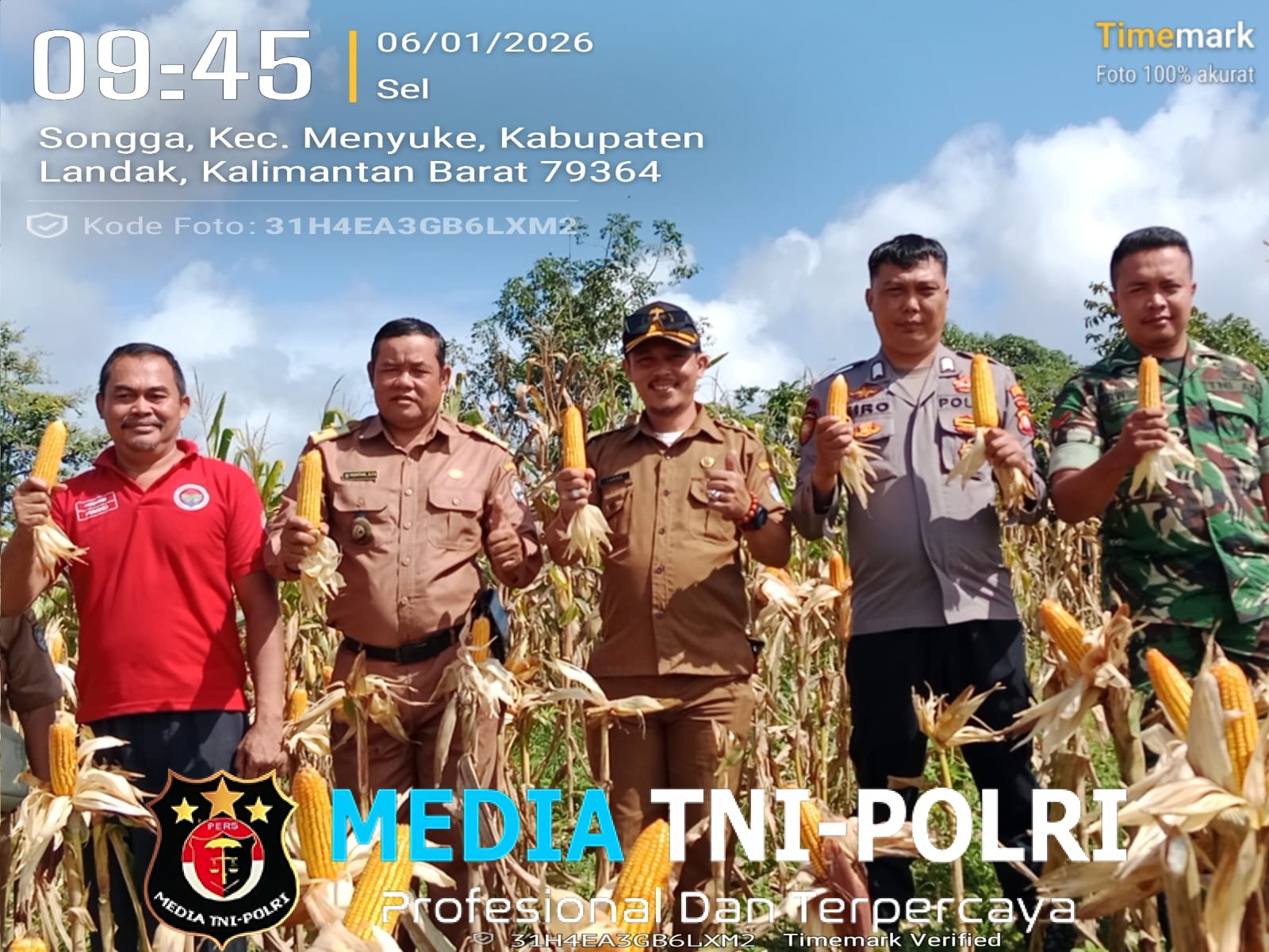 LANDAK // MEDIATNI-POLRI.COM / Panen perdana tanaman jagung 1 Desa 1 Hektar di Desa Songga Kecamatan Menyuke Kabupaten Landak.
