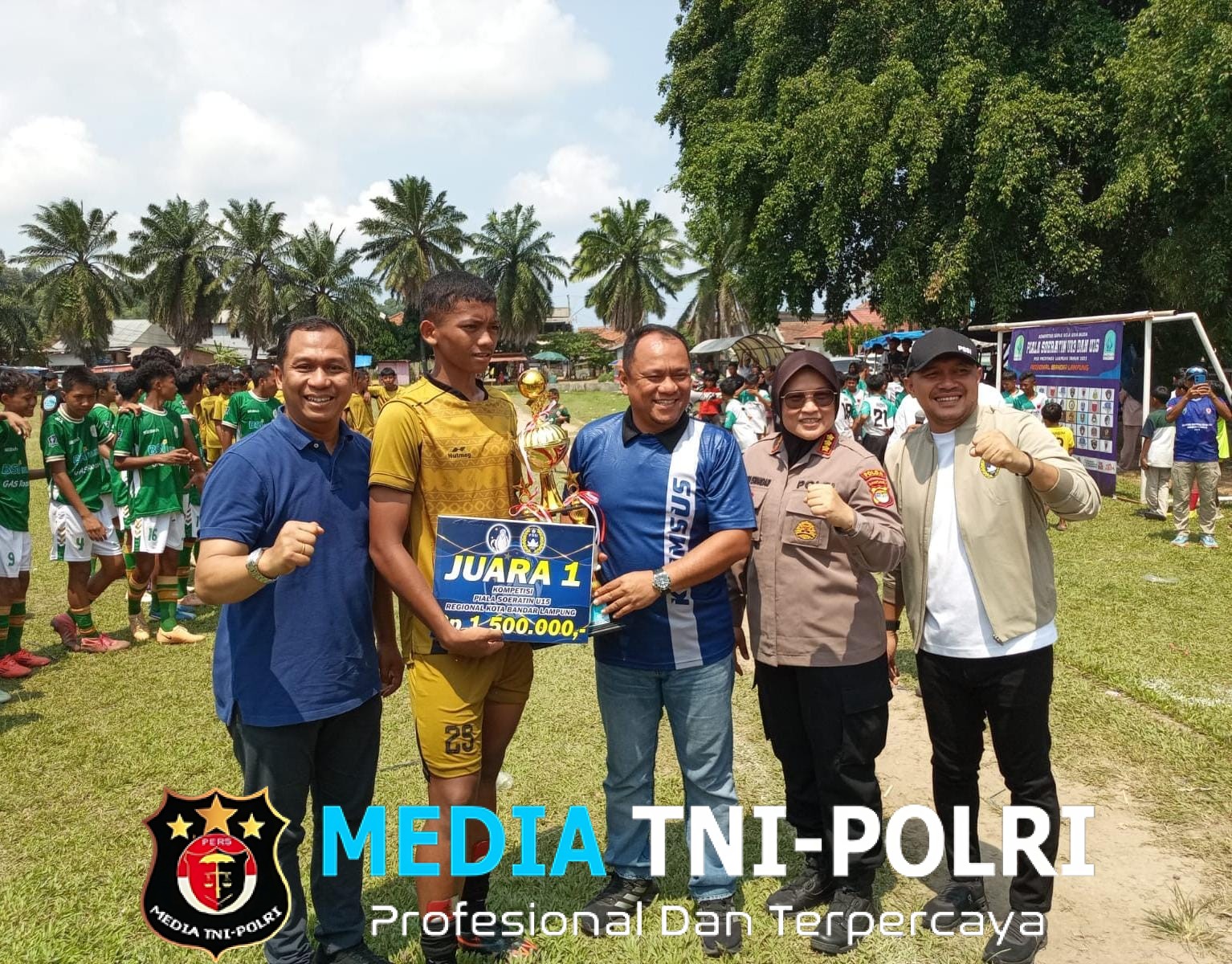Sementara tim U-15 yang dibimbing Manager Kompol Try Maradona juga tak kalah hebat, mampu mengalahkan Tim Bina Bangsa dengan skor 2-0 di pertandingan final.