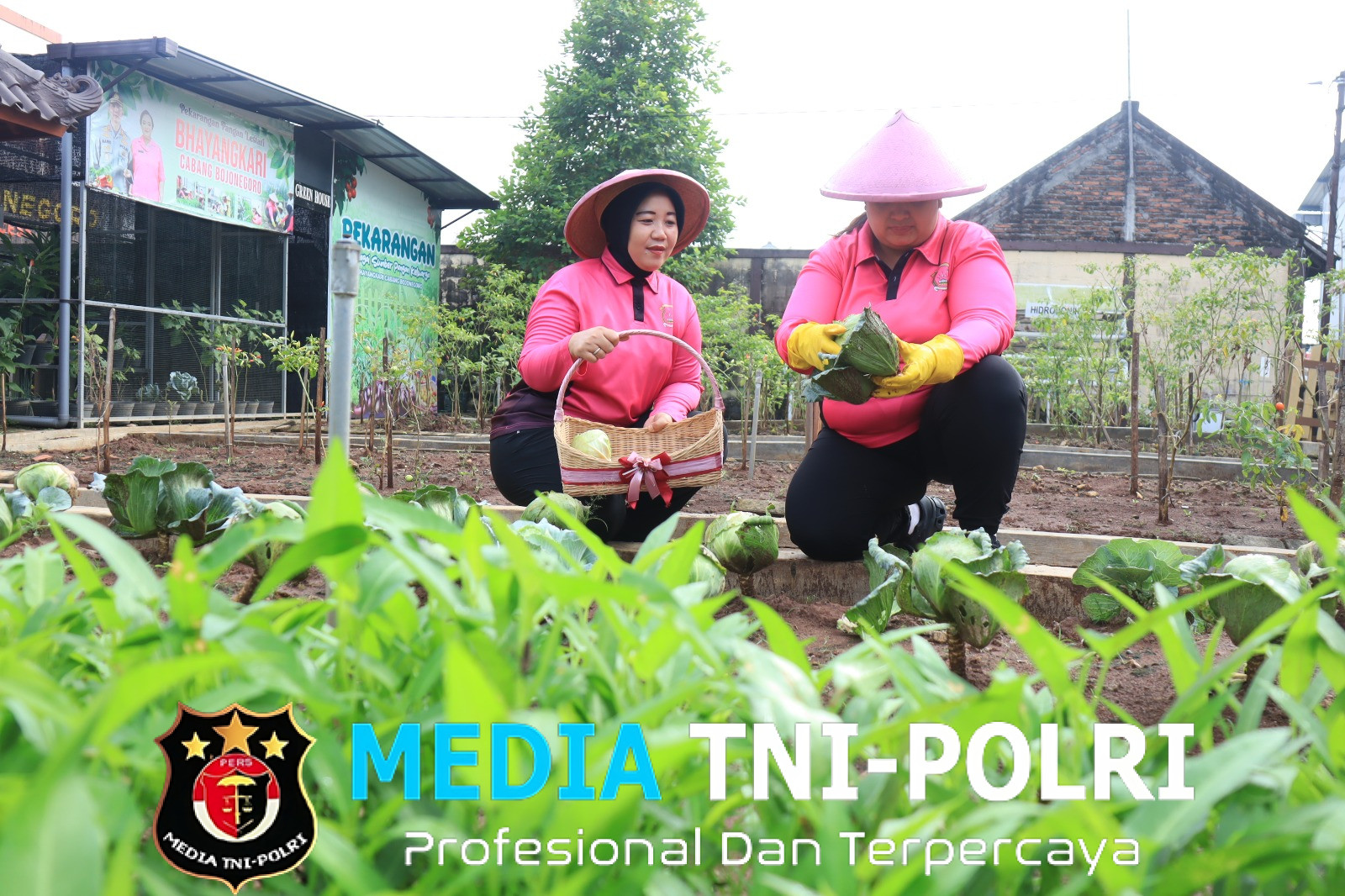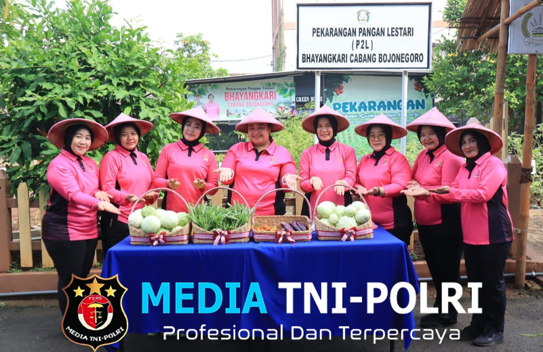 BOJONEGORO // MEDIATNI-POLRI.COM / Dalam upaya mendukung ketahanan pangan, Bhayangkari Cabang Bojonegoro melaksanakan panen sayuran di lahan Pekarangan Pangan Lestari (P2L) milik Polres Bojonegoro.