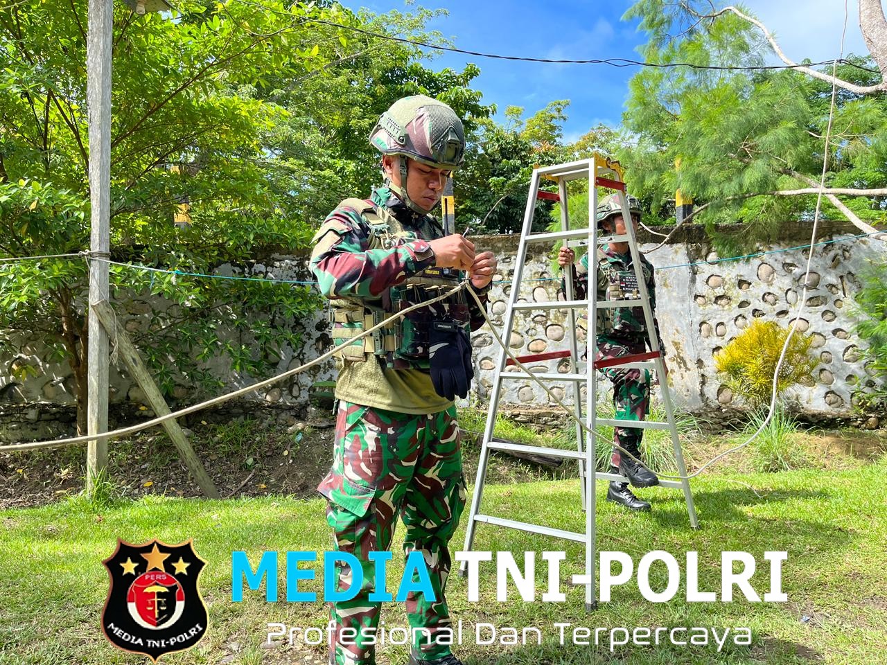 Satgas Yonif 521/DY melalui Pos Muara Nawa memperbaiki aliran arus listrik yang terputus di kampung Muaranawa, Distrik Airu, Kabupaten Jayapura.