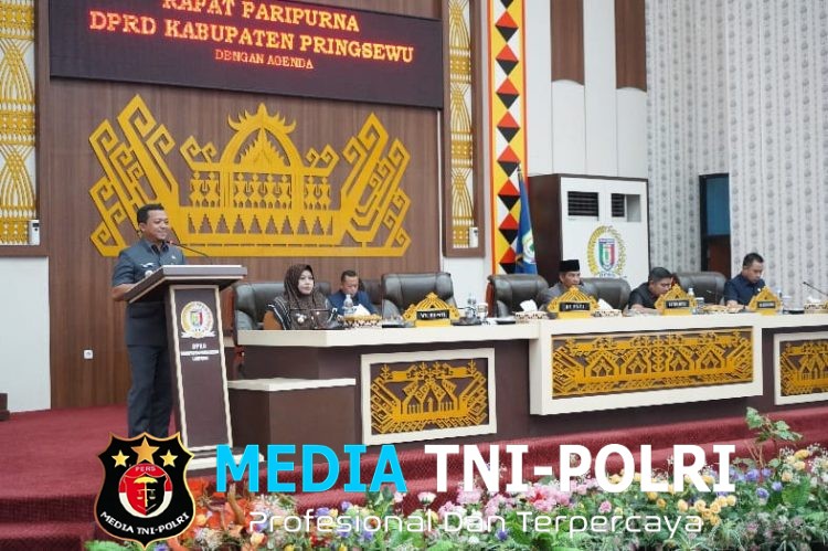 PRINGSEWU // MEDIATNI-POLRI.COM / Bupati Pringsewu Riyanto Pamungkas menyampaikan jawaban atas pemandangan umum fraksi-fraksi DPRD Kabupaten Pringsewu terkait Rancangan Peraturan Daerah (Ranperda) tentang Perubahan APBD Kabupaten Pringsewu 2025 pada Rapat Paripurna DPRD setempat, Rabu (3/9/2025).