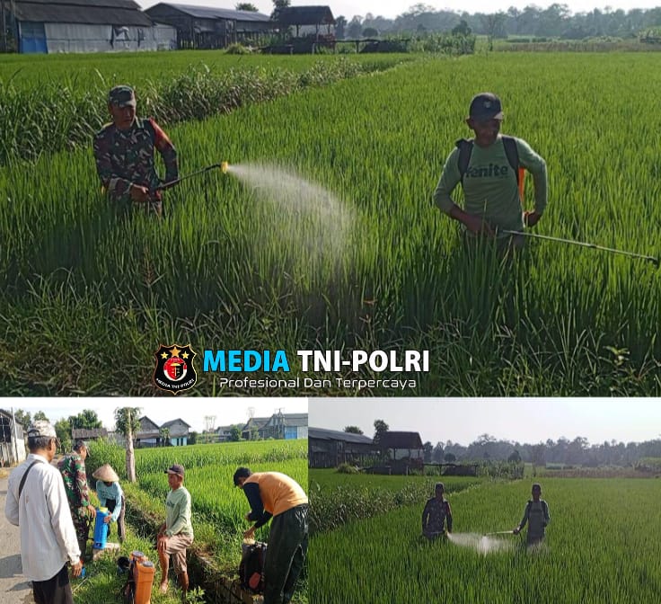 BLITAR // MEDIATNI-POLRI.COM / Dalam upaya membantu petani merawat serta mencegah serangan hama pada tanaman padi, Babinsa Kelurahan Satrian, Koramil 0808/03 Kanigoro Kodim 0808/Blitar Serda Susanto,
