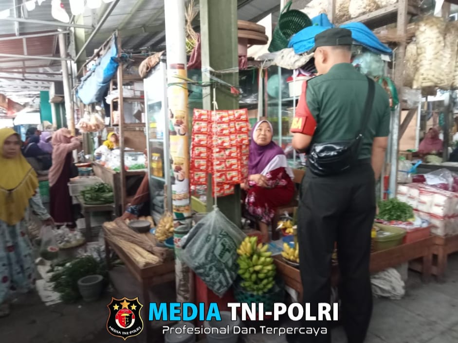 SRAGEN // MEDIATNI-POLRI.COM / Dalam rangka memastikan harga sembako tetap stabil khususnya disaat bulan ramadhan dan menjelang lebaran, Anggota Koramil 15/Gemolong Kodim 0725/Sragen Serda Eko Cipto turun ke pasar tradisional di Wilayah Kecamatan Gemolong, Rabu (05/03/2025)