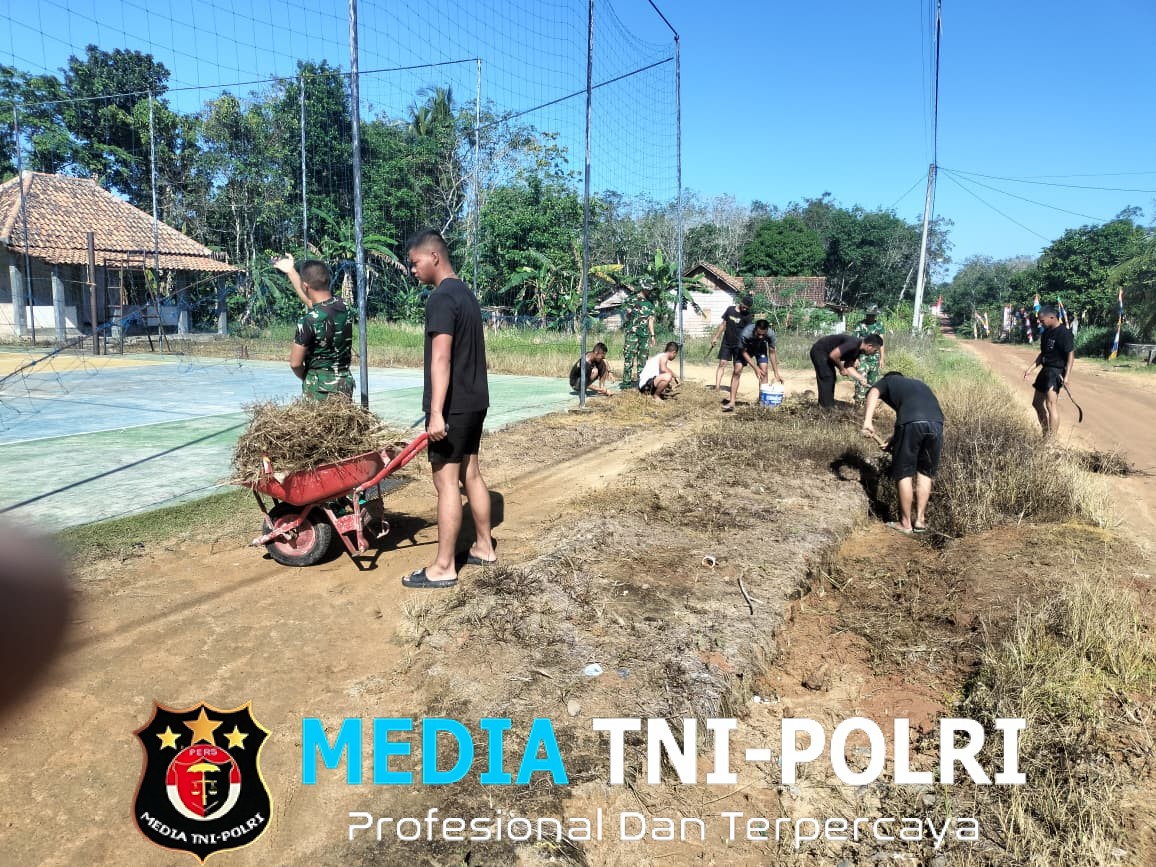 Dengan penuh semangat gotong royong, kegiatan ini menjadi bukti nyata sinergi antara TNI dan masyarakat dalam menjaga kebersihan desa.