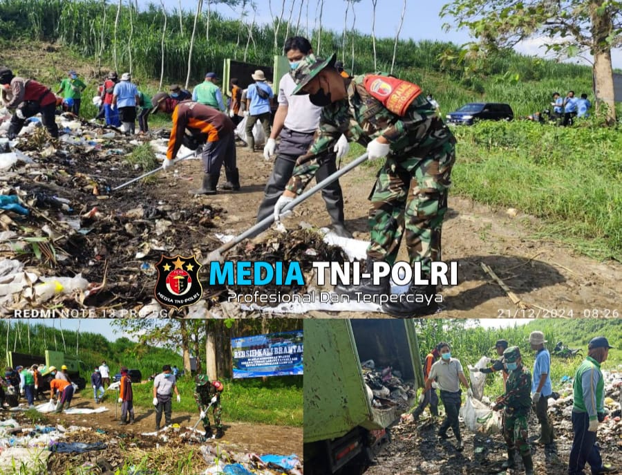 BLITAR // MEDIATNI-POLRI.COM / Dalam upaya menciptakan lingkungan yang bersih dan sehat, Koramil 0808/09 Sutojayan bersama warga masyarakat dan dinas terkait melakukan aksi bersih-bersih sampah di hulu bendungan sungai Brantas.