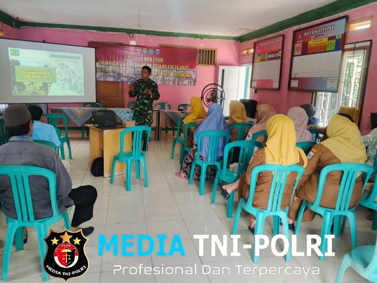 PANDEGLANG // MEDIATNI-POLRI.COM / Dalam rangka pelaksanaan program TNI Manunggal Membangun Desa (TMMD) ke-126 Tahun Anggaran 2025, Kapten Inf Dedi Bonar Sirait selaku Danramil 0101/Pandeglang memberikan penyuluhan wawasan kebangsaan kepada masyarakat Desa Cikentrung,