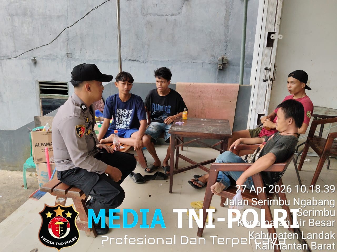 LANDAK // MEDIATNI-POLRI.COM / Polsek Air Besar ~ Polres Landak ~ Polda Kalbar ~Suasana santai penuh keakraban terlihat di wilayah Air Besar saat personel kepolisian menyapa warga dengan pendekatan yang humanis, Senin (27/4/2026).