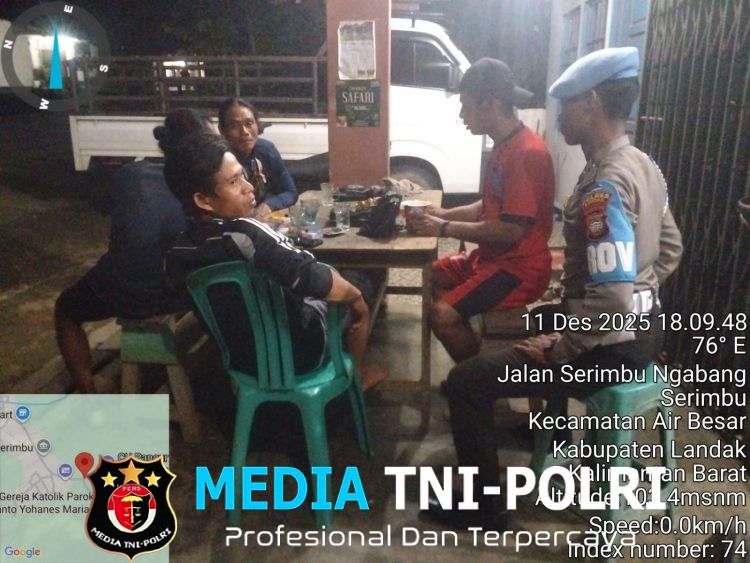 LANDAK // MEDIATNI-POLRI.COM / Polsek Air Besar ~ Polres Landak ~ Polda Kalbar ~ Kamis malam (11/12/2025), jajaran Polsek Air Besar kembali melaksanakan patroli rutin untuk menjaga keamanan dan ketertiban masyarakat di wilayah hukum Kecamatan Air Besar, Kabupaten Landak.