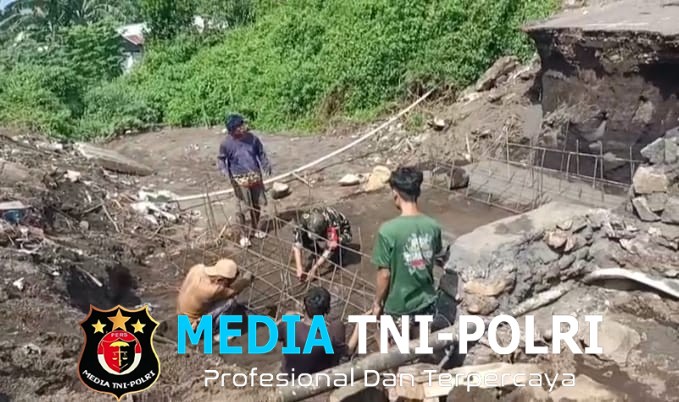 BITUNG // MEDIATNI-POLRI.COM / Semangat kebersamaan kembali ditunjukkan warga dalam mendukung percepatan pembangunan Jembatan Beton Garuda.
