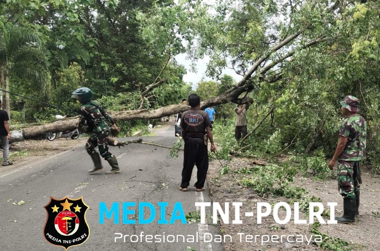 WONOGIRI // MEDIATNI-POLRI.COM / Anggota Koramil 20/Kismantoro Kodim 0728/Wonogiri yang sedang melaksanakan Piket Pelda Hadi bersama Piket Polsek dan warga setempat bergerak cepat untuk melakukan evakuasi pohon tumbang yang menutupi badan jalan antar Provinsi Raya Wonogiri – Pacitan tepatnya di Dusun Miri Desa Gedawung Kecamatan Kismantoro, Sabtu (10/1/2026).