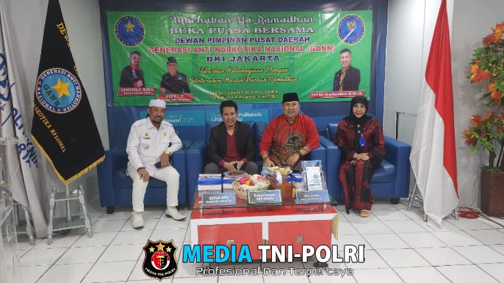 JAKARTA // MEDIA TNI- POLRI..COM / Dalam rangka menyambut Ramadan 1446 Hijriah, Dewan Pimpinan Daerah (DPD) Gerakan Anti Narkotika Nasional (GANN) DKI Jakarta menggelar acara buka puasa bersama di Politeknik LP3I, Jalan Kramat Raya No. 7-9, Jakarta Pusat.