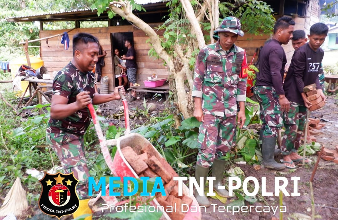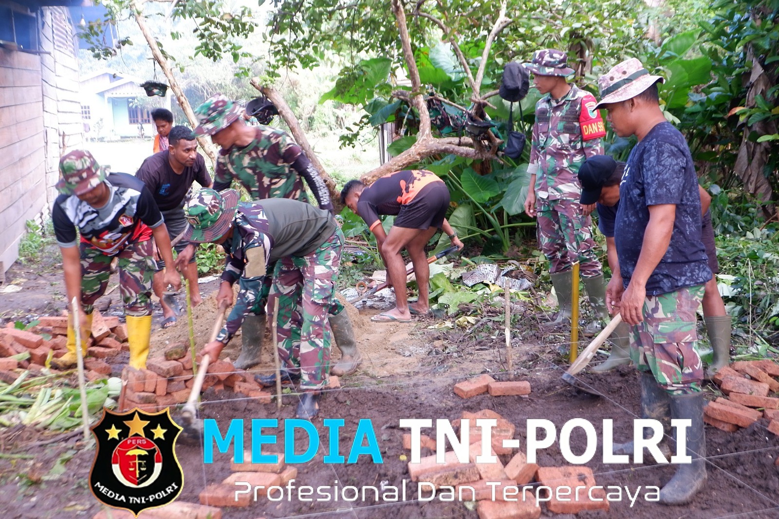 Dan dalam pelaksanaannya dilakukan secara bergotong royong antara personel Satgas TMMD yang terdiri dari unsur TNI-Polri bersama masyarakat setempat.
