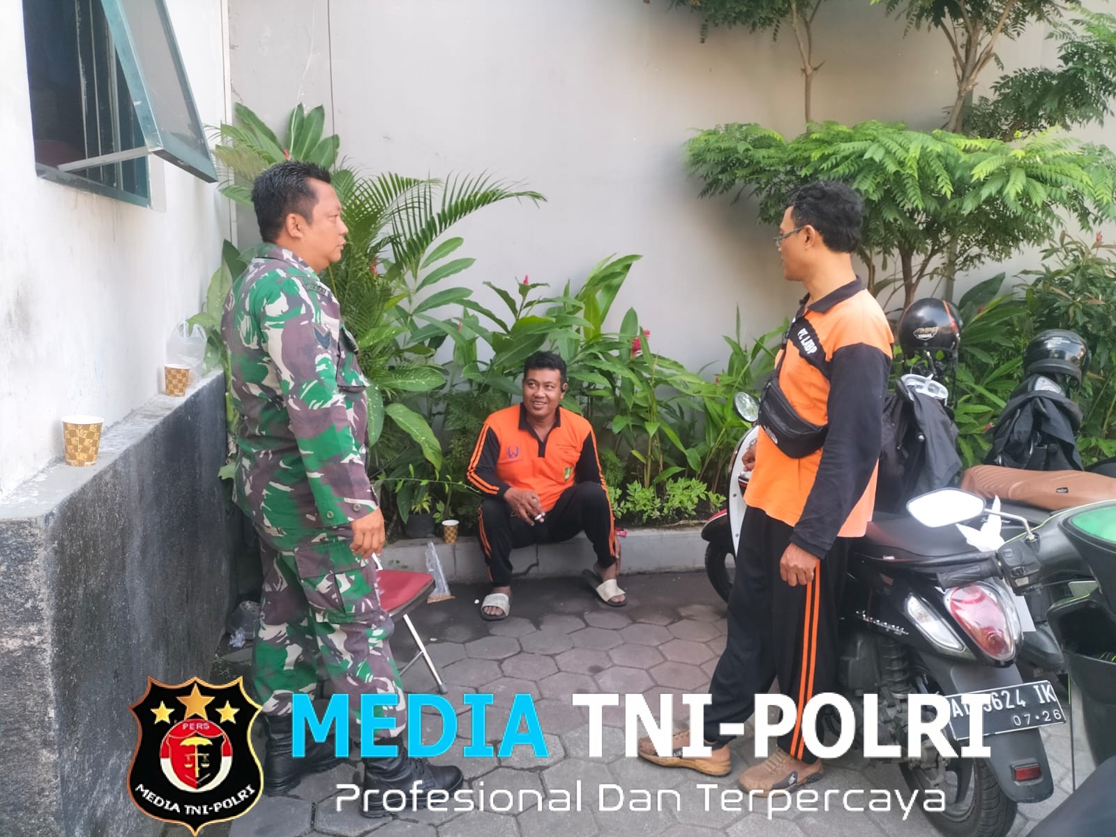 SURAKARTA // MEDIATNI-POLRI.COM / Babinsa Kelurahan Kemlayan Koramil 03/Serengan Kodim 0735/Surakarta Serka Priyanto Komsos dengan duduk bersama dan ngobrol santai dengan petugas kebersihan Kelurahan bertempat di Halaman Kelurahan Kemlayan Kecamatan Serengan Kota Surakarta,