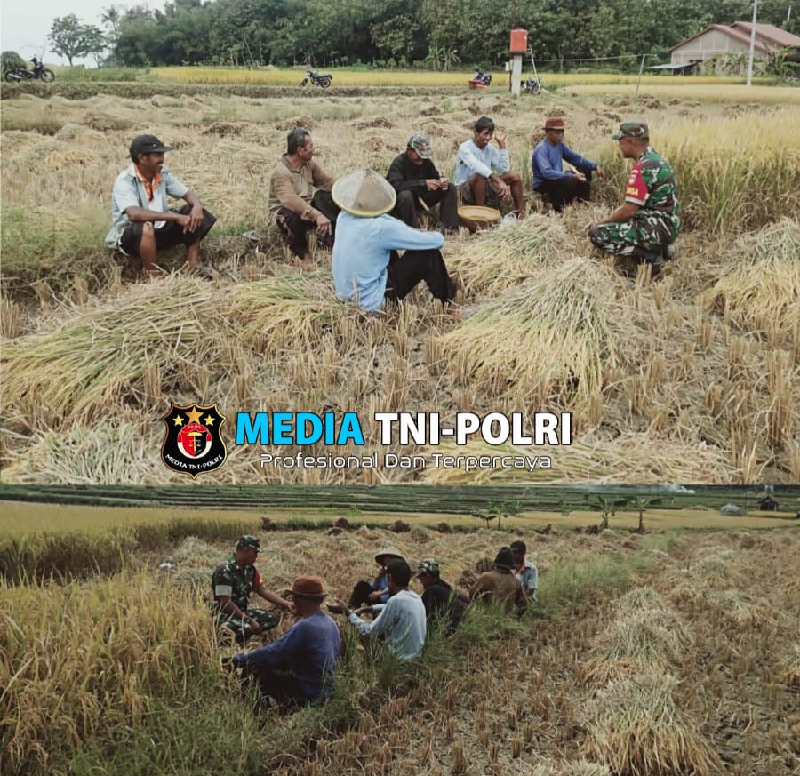 Babinsa Serda Sugiyarto mengatakan dalam mendukung Ketahanan Pangan (Hanpangan) dengan semangat ikut serta terjun langsung ke sawah untuk membantu para petani desa binaannya saat memanen padi agar supaya terwujud kemanunggalan TNI dengan Rakyat