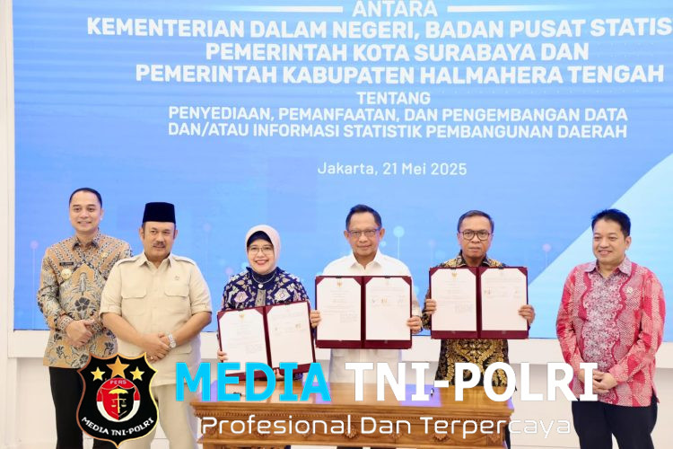 JAKARTA // MEDIATNI-POLRI.COM / Menteri Dalam Negeri (Mendagri) Muhammad Tito Karnavian menandatangani kerja sama dengan Badan Pusat Statistik (BPS), Pemerintah Kota Surabaya, dan Pemerintah Kabupaten Halmahera Tengah.