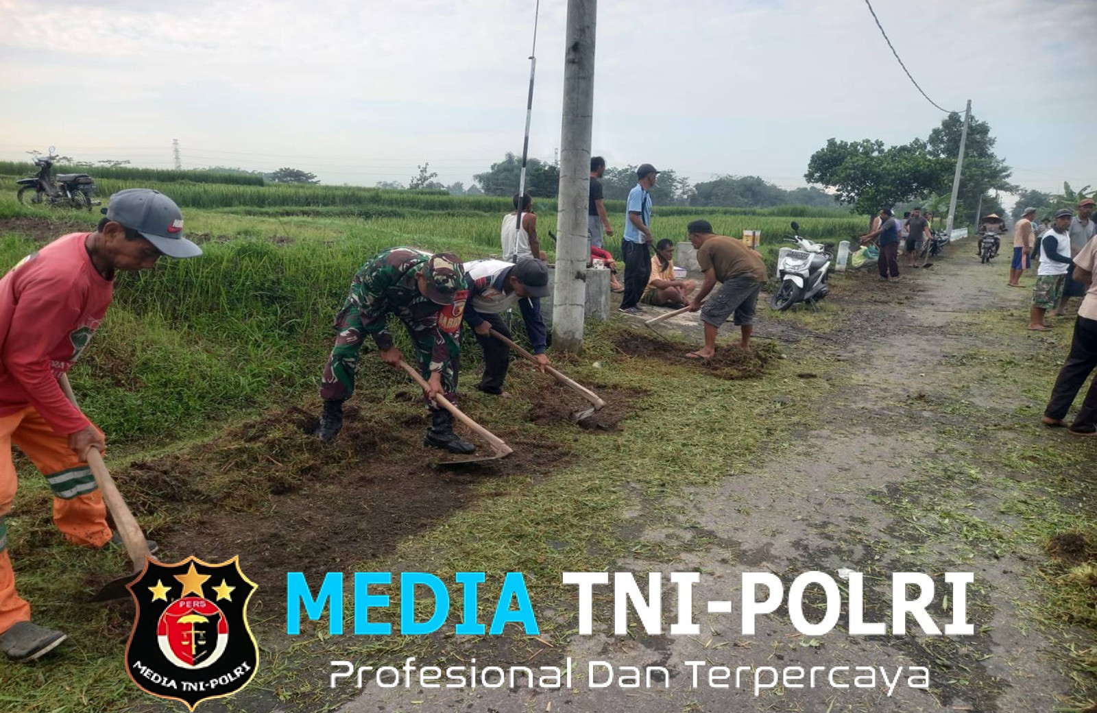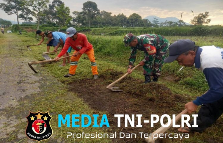 Babinsa Kelurahan Kaweron Serda Edi Prasetiyo dari Koramil 0808/16 Talun Kodim 0808/Blitar, bersama warga binaannya melaksanakan kegiatan gotong royong membersihkan lingkungan kanan – kiri sepanjang jalan desa di Lingk.